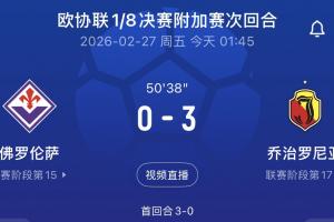 体育资讯02月27日讯 欧协联1/8决赛附加赛次回合,佛罗伦萨对阵乔治罗尼亚。